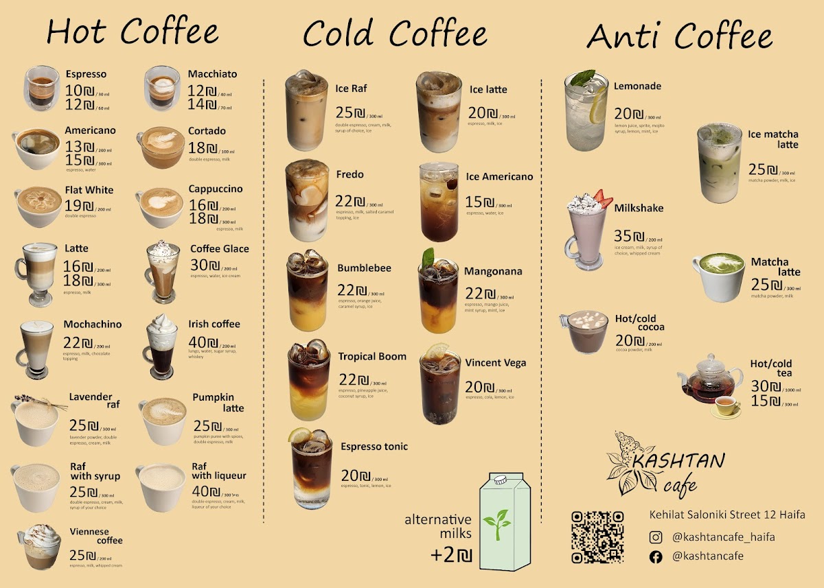 The menu is organized primarily around coffee and beverages, light bites, and desserts, catering to both quick orders and casual dining experiences. This approach allows visitors to choose from individual drinks, small meals, or sweet treats depending on their preferences and time of day.